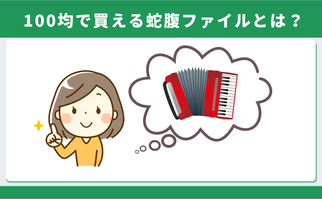 100均の売り場でも店舗によって商品名がバラバラなので、「蛇腹になっているファイル」で探すとスムーズですよ。