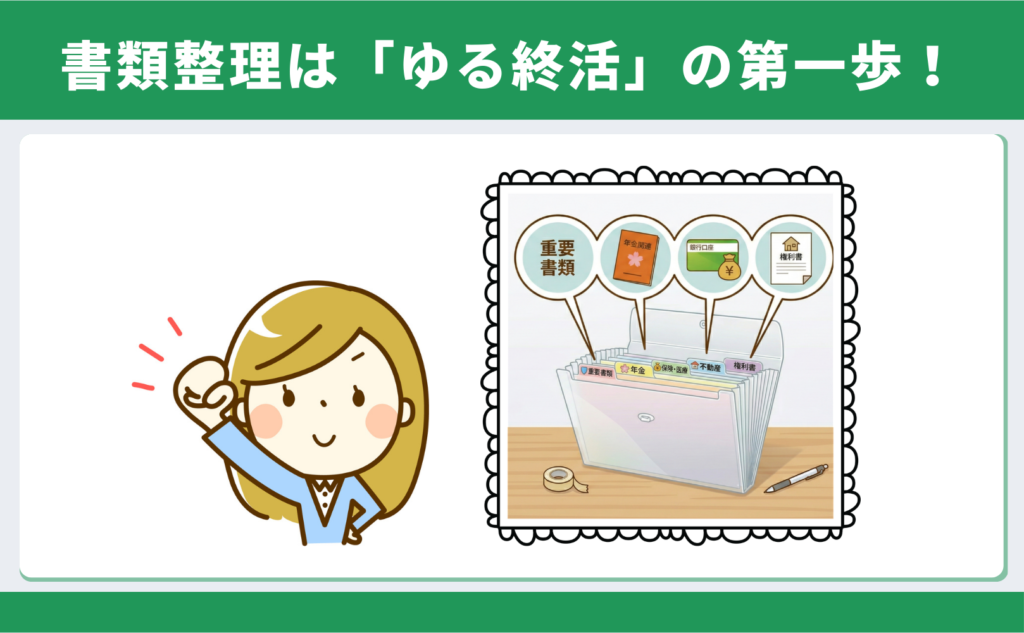 それは、書類を整理しておくことは「ゆる終活」にもつながるということです。