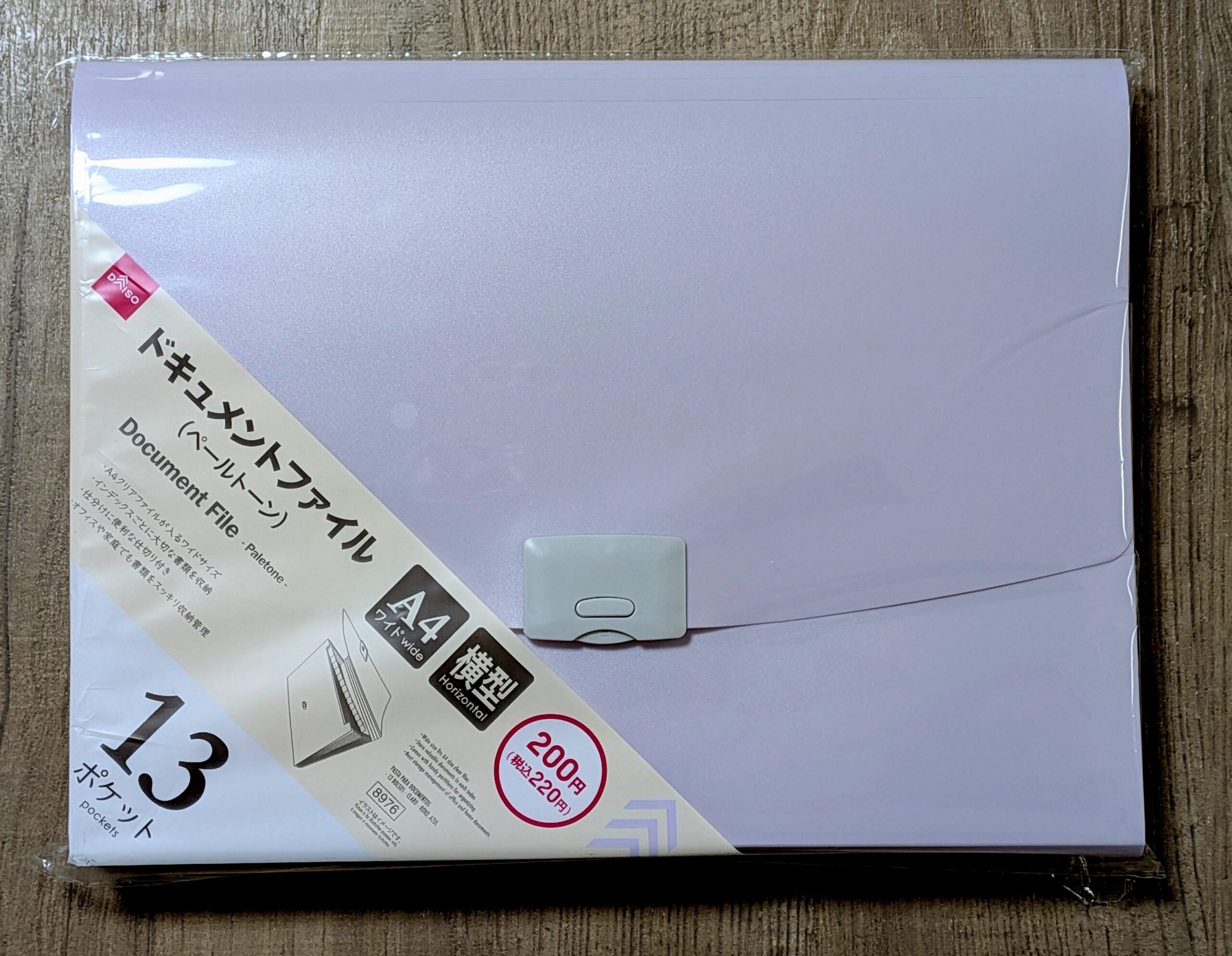 ダイソー|ドキュメントファイル(ペールトーン)A4ワイド 13ポケット ¥220【筆者愛用】