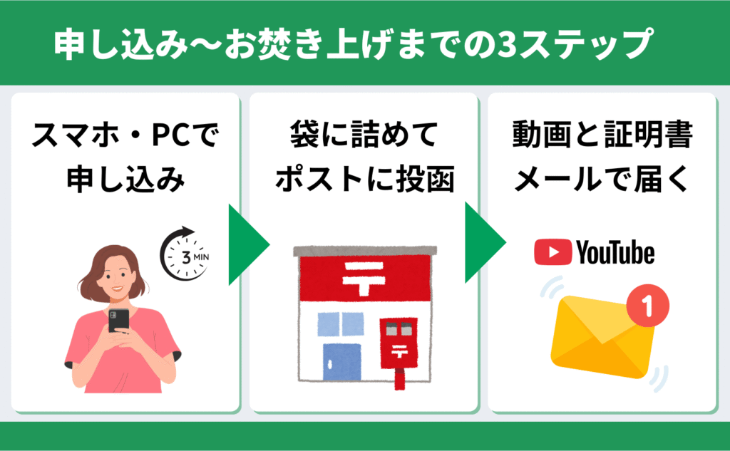 「みんなのお焚き上げ」申し込み〜お焚き上げまでの3ステップ