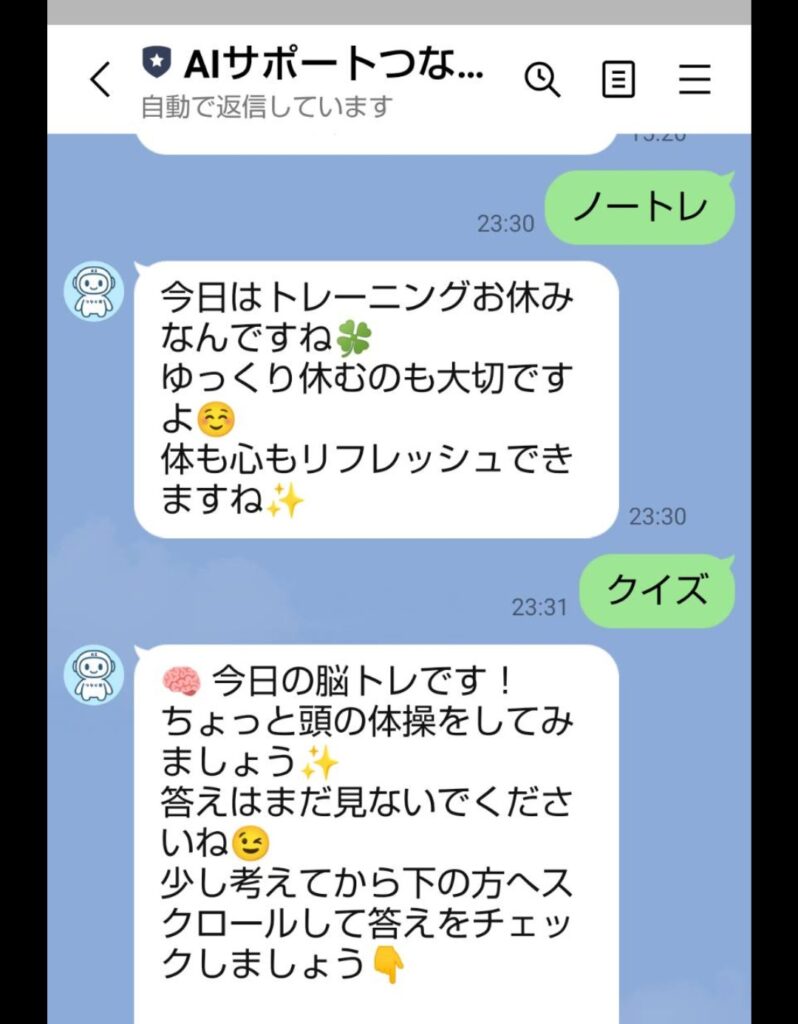 AIサポートつなぐ君を導入してからは、朝の通知で「今日もボタン押してくれたな」と確認できるだけで、気持ちがスーッと軽くなりました。