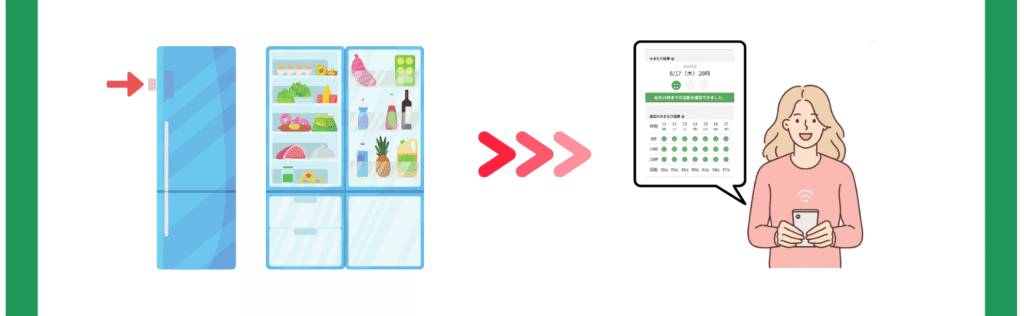 センサー型は、さまざまな場所にセンサーを取り付けて、ドアの開閉、冷蔵庫の開閉、トイレの利用頻度などを検知し、生活の様子を見守ります。