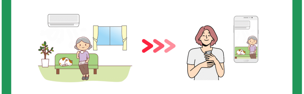 カメラ型は、実家に設置したカメラを通じて、離れて暮らす家族がリアルタイムで親の様子を確認できる見守りサービスです。
