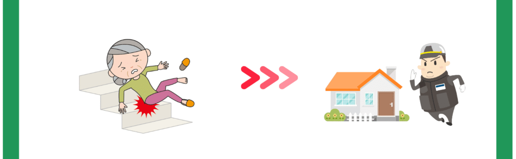 緊急通報型見守りサービスは、急病・転倒だけでなく、もし誰かが家に押し入ってきた場合でも、ボタン一つで助けを呼べます。