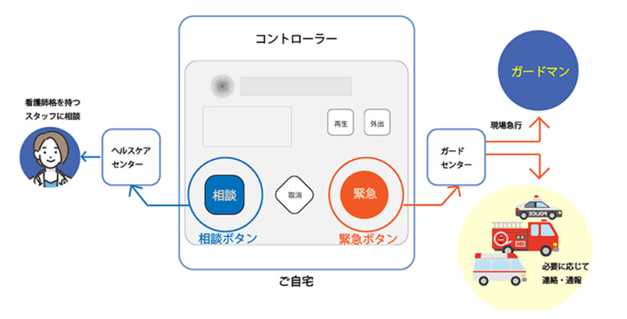 緊急通報型 | 緊急時にボタン操作で、駆けつけサービスなどの対応が受けられる |