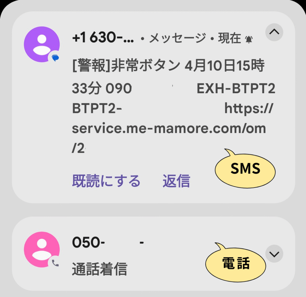 通知型は、通報ボタンを押すとあらかじめ登録した「家族のスマホ」にメッセージや位置情報を送ってくれるタイプです。