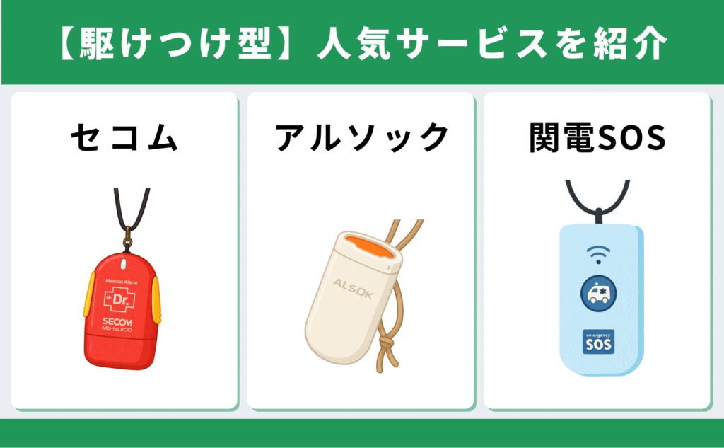 セコム・アルソック・関電SOSなどの「駆けつけ型」はスマホ不要で、ペンダントのボタンを押すだけで通報できます。