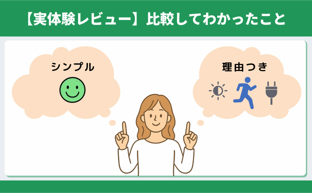このあと、「何が違うの?」「どっちがうちに合うの?」という部分を分かりやすく比較していきます。