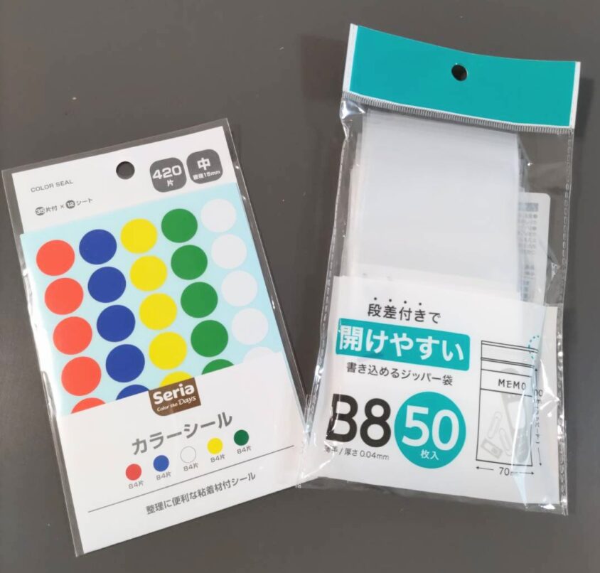 ステップ①:セリアでジッパー袋とカラーシールを購入