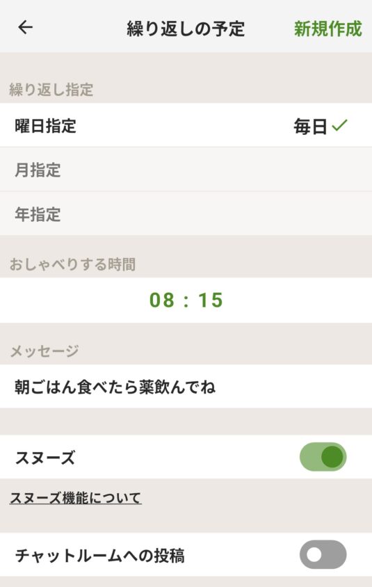 Bocco emoの「おしゃべり機能」の中に「繰り返しの予定」という機能があって、決まった時間に決まったメッセージを読み上げてくれるんです。