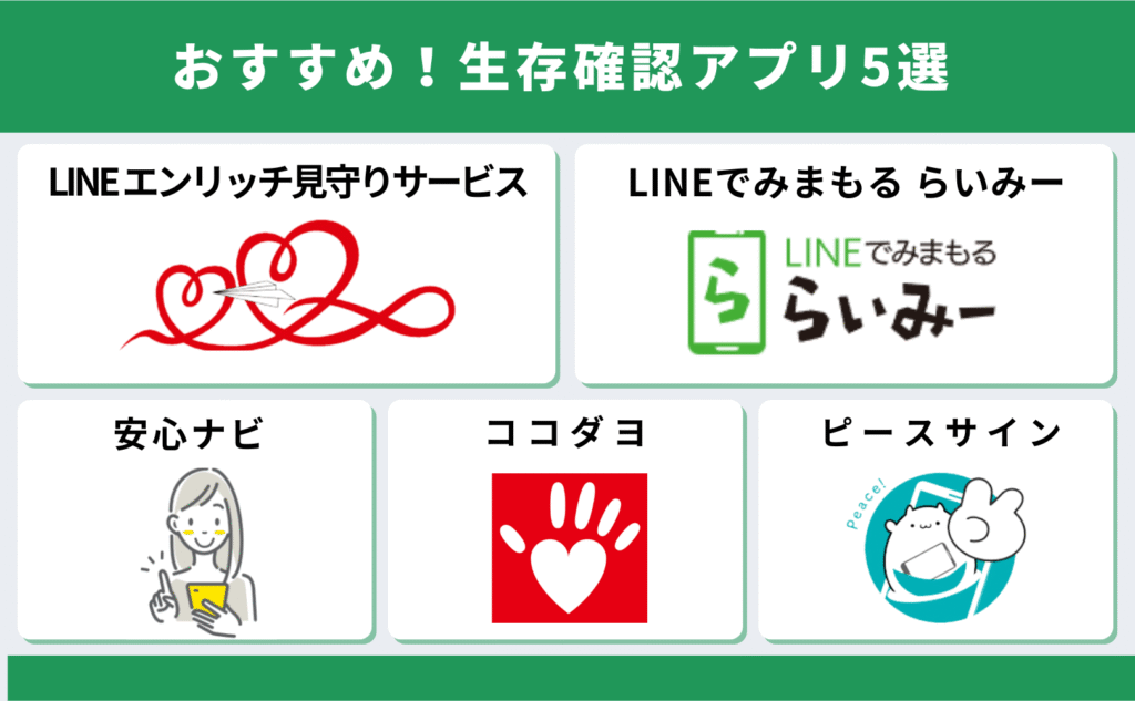 ここでは、高齢の親と離れて暮らす家族にぴったりな生存確認アプリを5つ厳選してご紹介します。