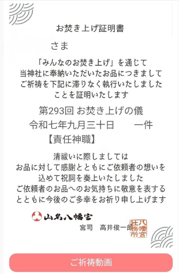 そのうえで、後日にはご祈祷の様子を収めた動画と証明書も送っていただけたので、私は特に不満や不安は感じませんでした。