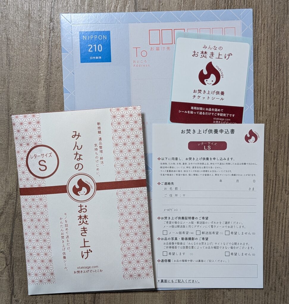 「みんなのお焚き上げ」では、送りたいモノの量に応じて、いくつかのキットが用意されています。