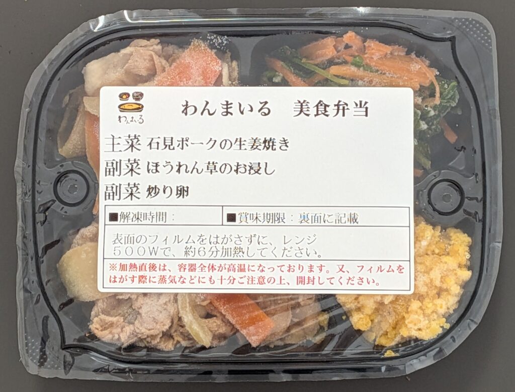 開けてまず感じたのは、「これなら母も迷わないな」ということ。 美食弁当のパッケージには、主菜と副菜の名前が大きな文字で印字されています。「今日は生姜焼きね」と冷凍庫を覗いた瞬間に一目でわかる。
