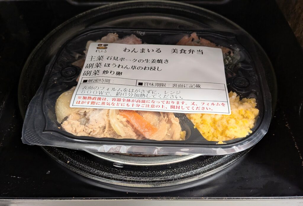 ところが、わんまいるに「美食弁当」という、レンジで温めるだけのトレータイプがあることを知りました。