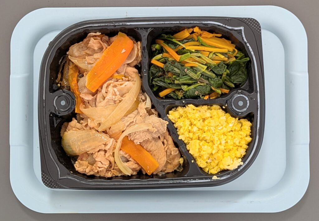 まずは、王道の生姜焼きから。トレーを開けて驚いたのは、器に隙間がないくらいぎっしりと商品が詰まっていること。 「冷凍弁当って、中身の量が少ない…」というイメージを、良い意味で裏切ってくれました。