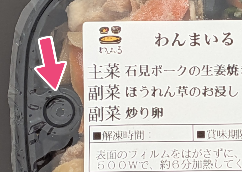 わんまいるの容器には独自の工夫があり、レンジで加熱すると袋の中で蒸気が循環し、一定の圧力がかかると特殊な蒸気口から外に逃げる仕組み。