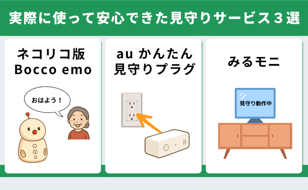 ここでは、私が実際に使って「これは良かった!」と感じた3つの見守りサービスをご紹介します。