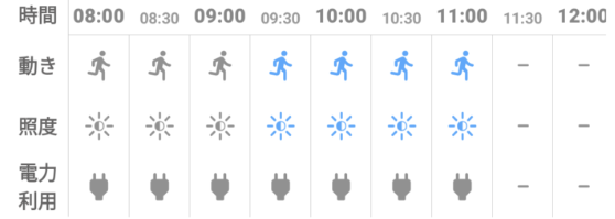 プラグは約30分ごとに検知しているので、「動きが青=元気に過ごしている」と判断できるんです。